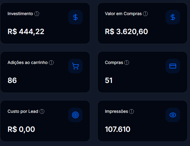 Sétimo dia R$ 444,22 investidos com um retorno de R$ 3.620,60.